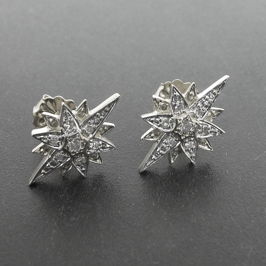 Par de Brincos Estrela de Ouro Branco com 12 Diamantes Totalizando 14 pts