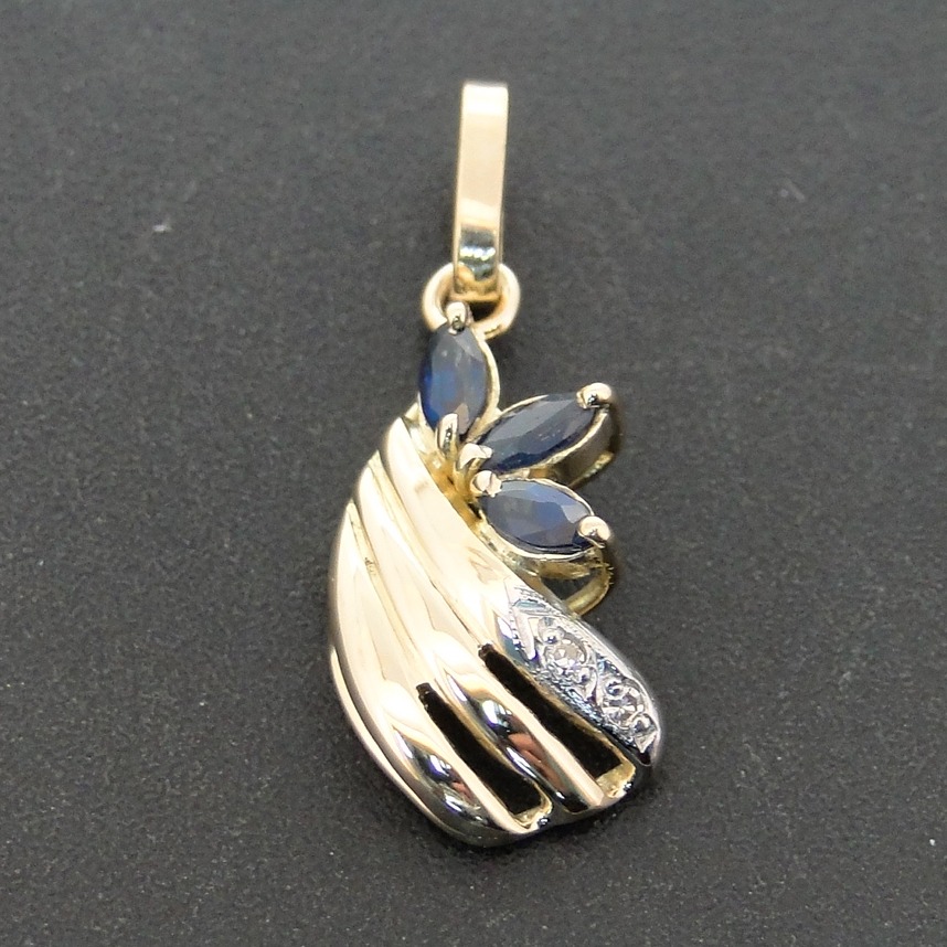 Pingente de Ouro Amarelo com 2 Diamantes e 3 Safiras
